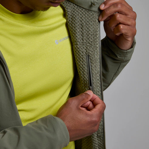 Montane’s RAPTOR FLEX softshell is made from 88% nylon (recycled) and 12% elastane plain weave with a PFC-free DWR coating to deliver wind and water resistance, and highly breathable performance to the Men’s Khamsin Hoodie.